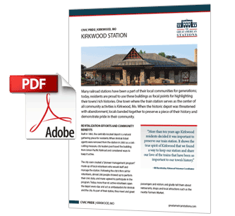 One town where the train station serves as the center of all community activities is Kirkwood, Mo. When the historic depot was threatened with abandonment, locals banded together to preserve a piece of their history and demonstrate pride in their community.